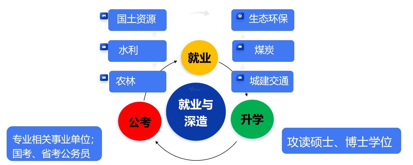 专业瞄准地下水科学与工程毕业人才紧缺的现状,紧密结合能源开发、工程建设与生态环境保护等重大国家战略。近三年地下水科学与工程专业平均考研录取率为52.3%,平均就业率93.1%,25届毕业生就业率达100%。专业深造高校或科研院所包括:中国地质科学院、中国科学院地质与地球物理研究所、中煤科工集团、中国地震局等科研院所;中国地质大学(北京、武汉)、西北大学、中国矿业大学(北京、徐州)、南京大学、长安大学、吉林大学、北京师范大学、中山大学、兰州大学等高校;出国深造(前往英国、美国、德国、加拿大、荷兰等具有水利工程、地质工程学科优势的高等学府)。