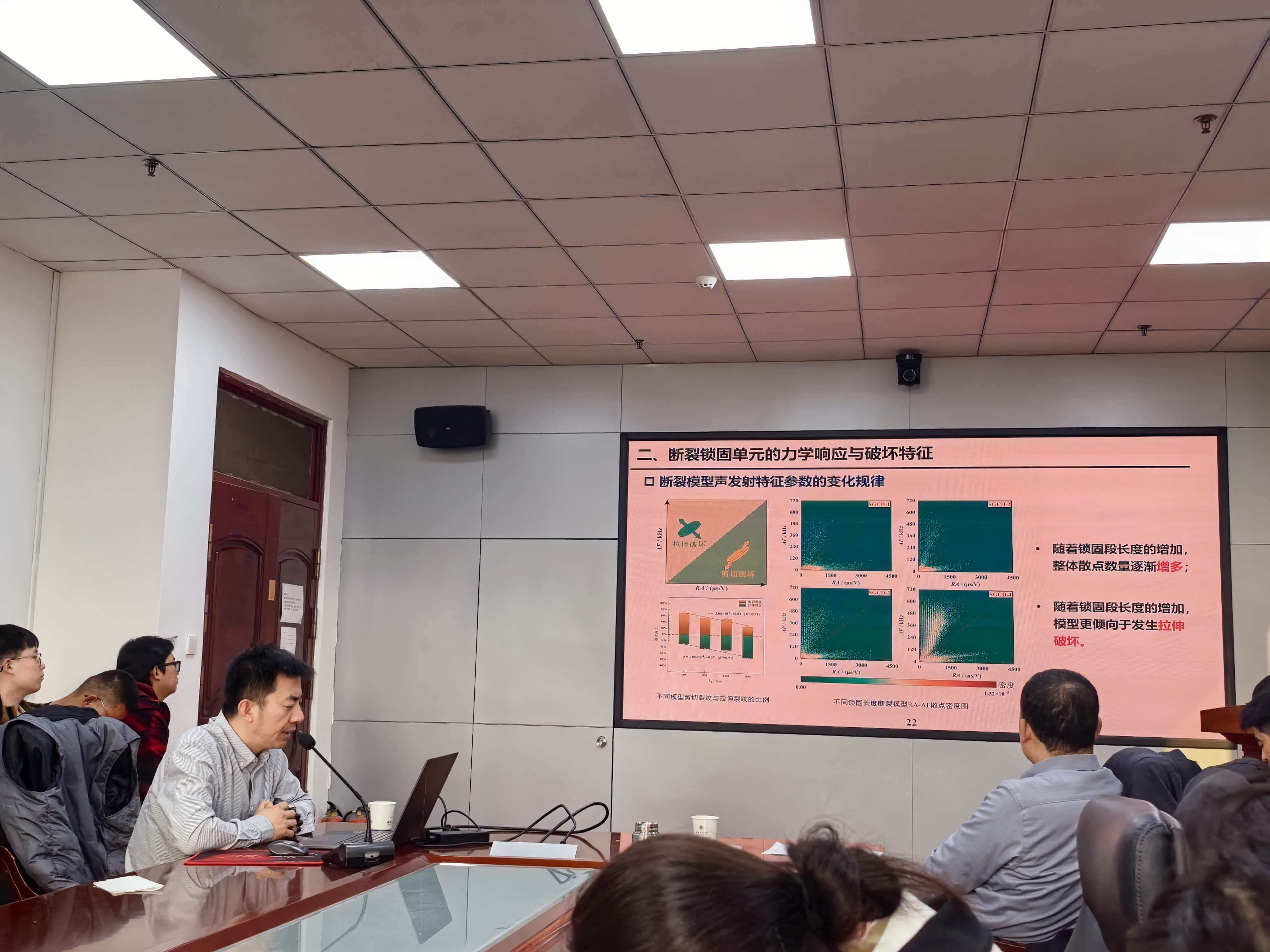 苏占东教授围绕“断裂局部应力场的空间分布状态及其演化规律”展开深入阐述,通过构建典型走滑断裂力学模型,采用物理模拟、数值模拟相结合的方法,探索走滑断裂基本结构单元(蠕滑单元和锁固单元)对构造应力作用的响应规律,分析了走滑断裂局部应力场对构造应力作用的响应及其对断裂活动性的表征,研究了断裂局部应力场主应力偏转角与断裂活动程度的量化关系等。报告拓展了研究生在地质力学与防灾减灾领域的学术认知。