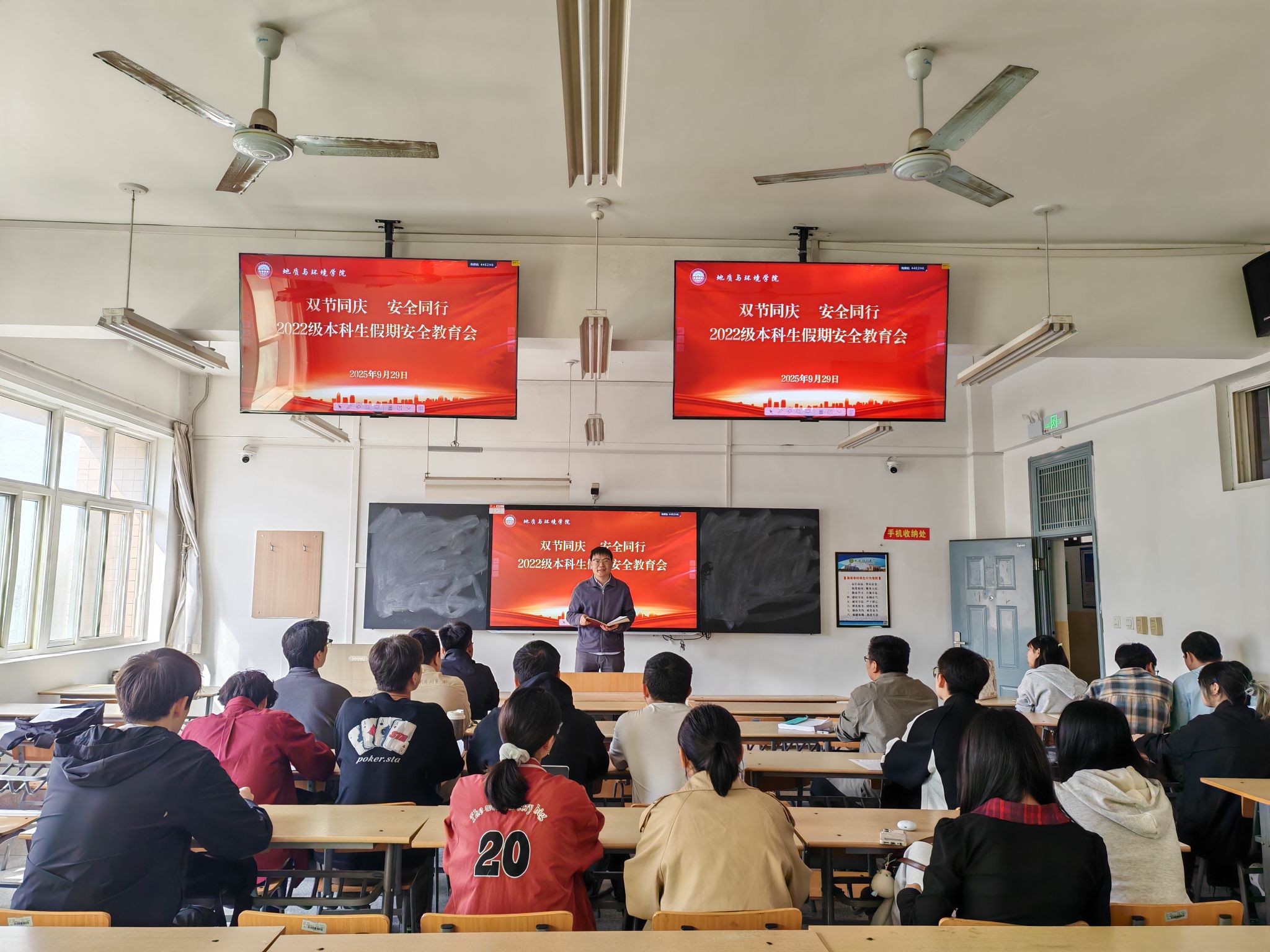 9月26日、28日、29日,学院2022级本科生带班辅导员余小涛深入骊山校园1教111,11教501、502、503、504等教室分专业召开国庆节、中秋节假期安全教育会,2022级全体本科生参会。