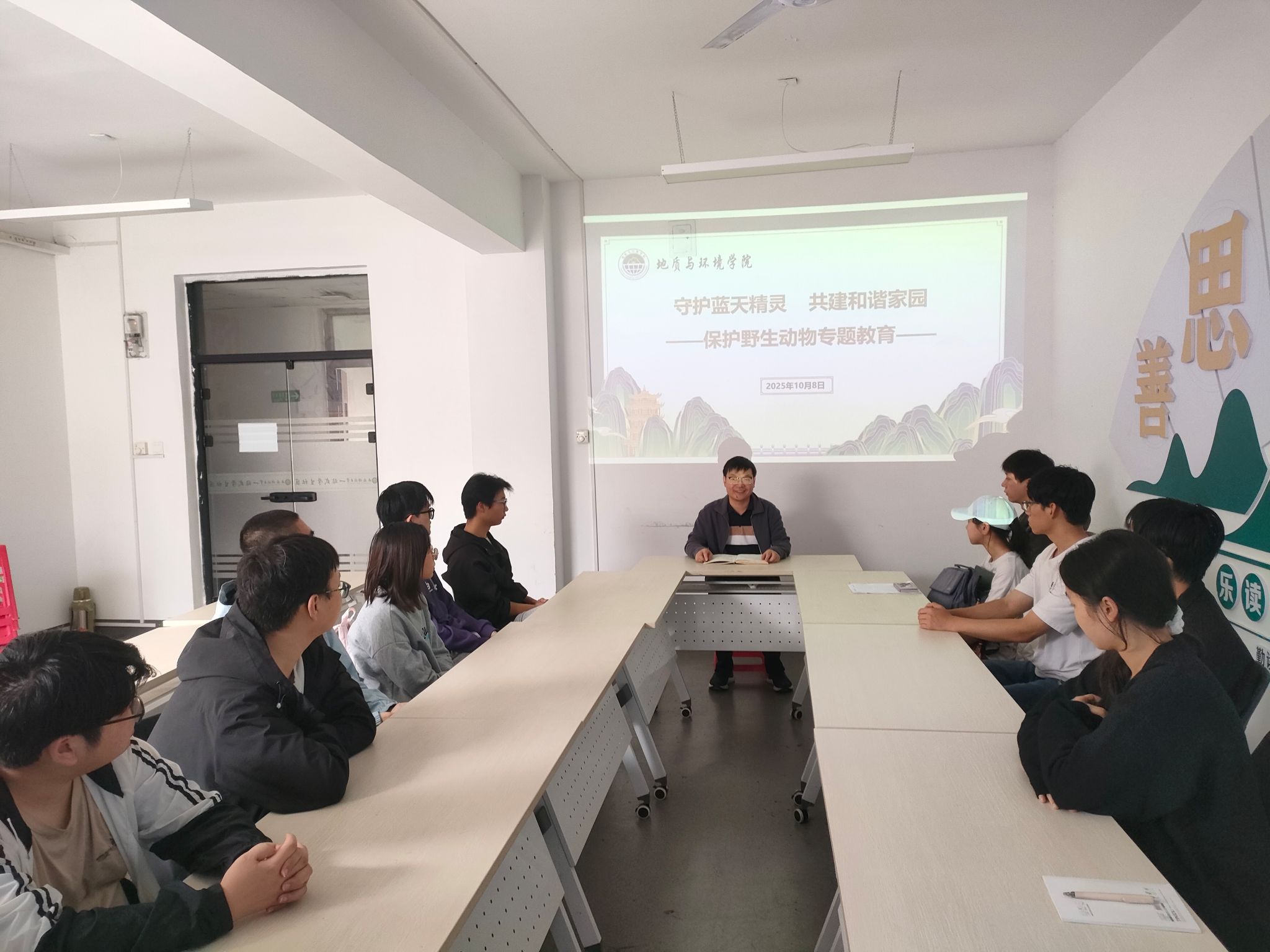 10月8日,学院在“一站式”学生社区开展保护野生动物专题教育会,2022级本科生代表20余人参会,带班辅导员余小涛主持会议。