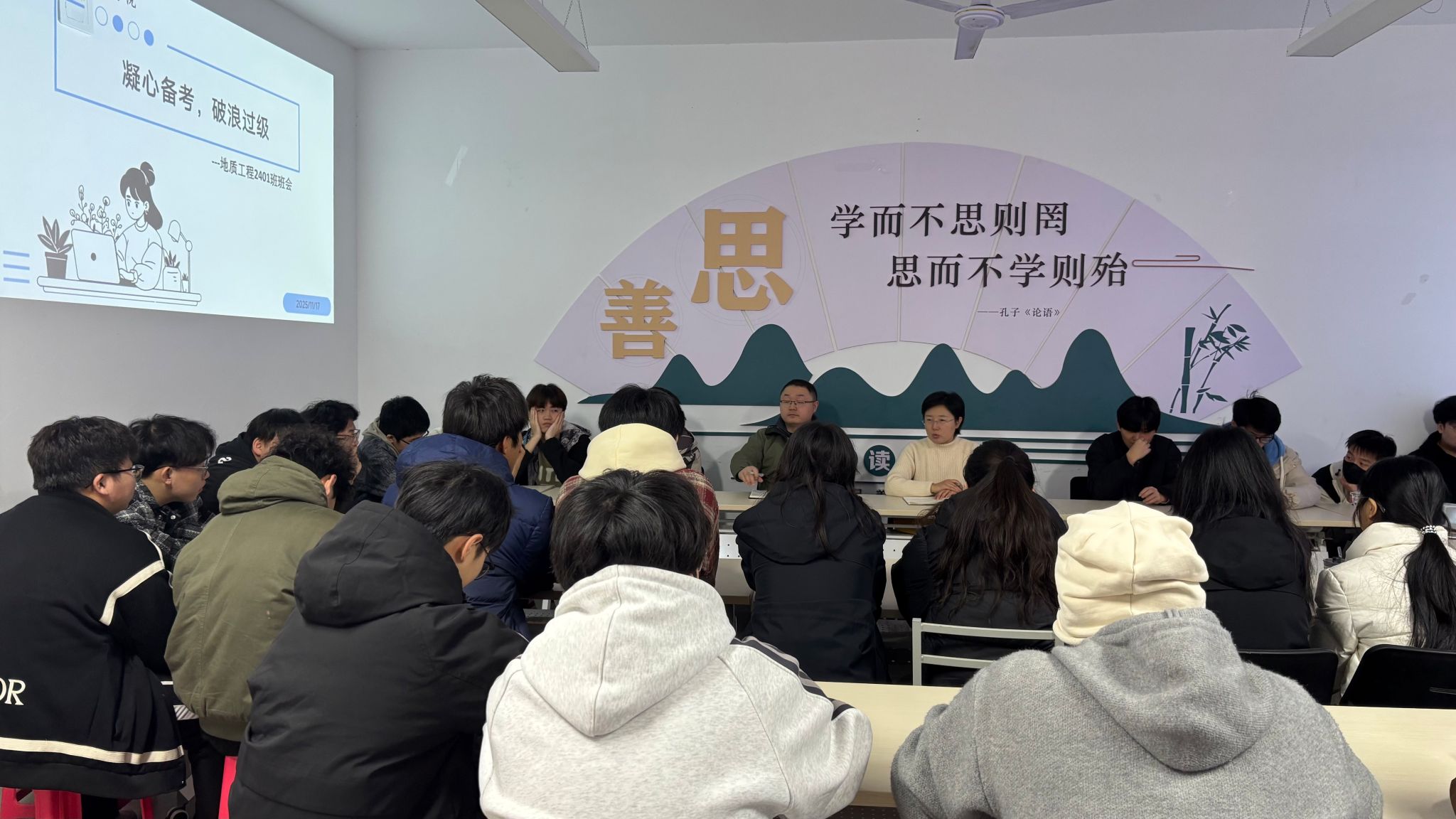 为帮助同学们高效备战英语四级考试,明确备考方向、掌握实用技巧,11月17日,地质工程2401班在“一站式”学生社区召开“凝心备考,破浪过级”主题班会。班主任李仁伟主持,辅导员李琳及全体同学参会。