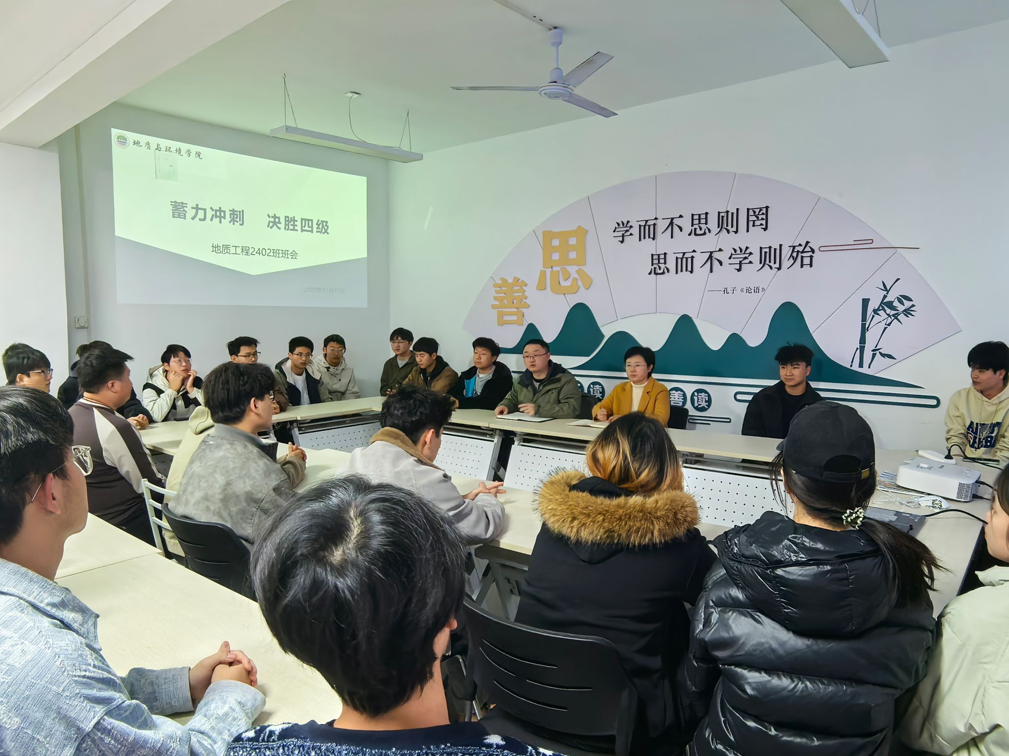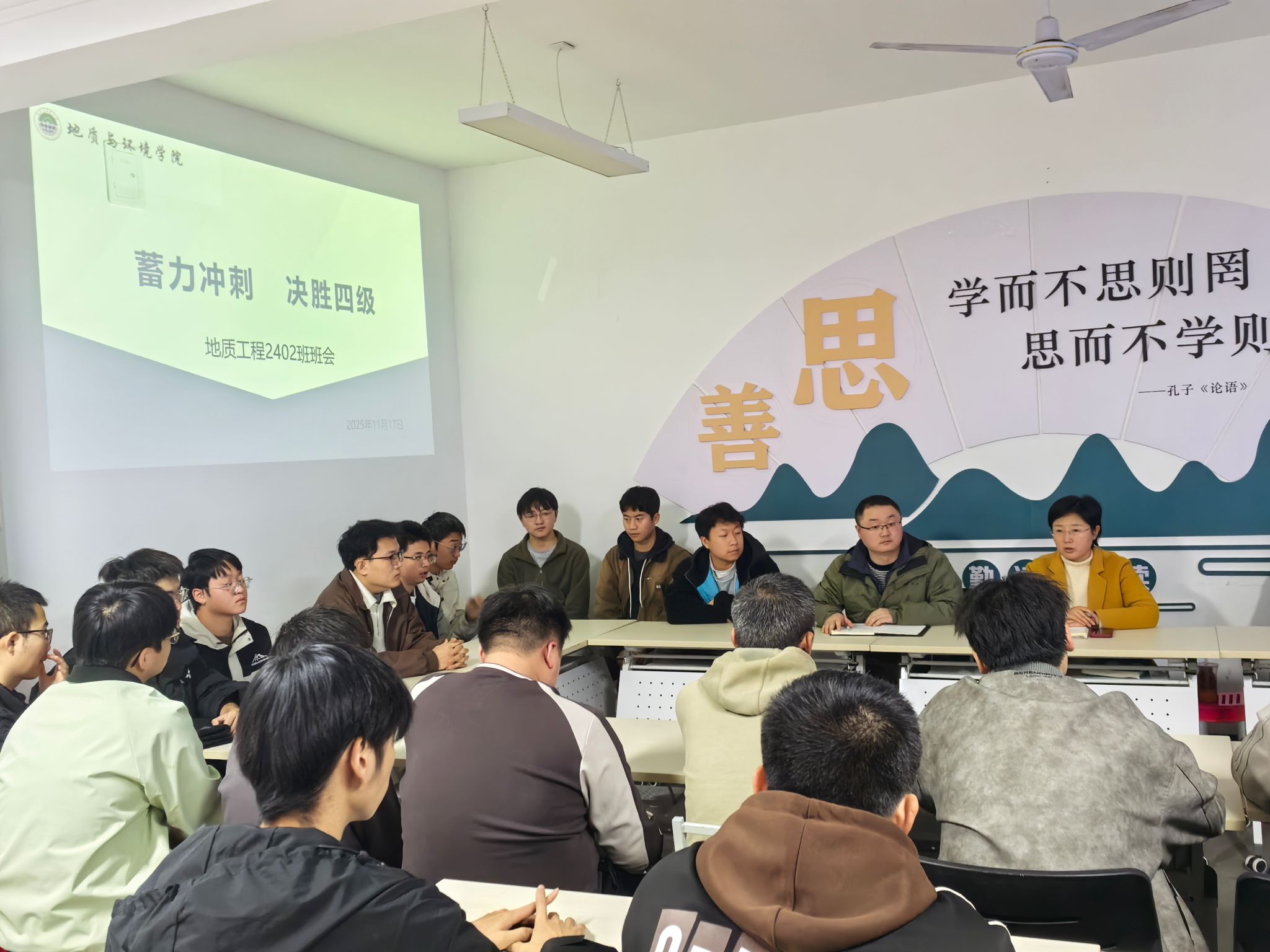 为帮助同学们把握英语四级备考关键期,11月17日,学院地质工程2402班在“一站式”学生社区召开“蓄力冲刺,决胜四级”主题班会。班会由辅导员李琳主持,班主任和全体同学参会。