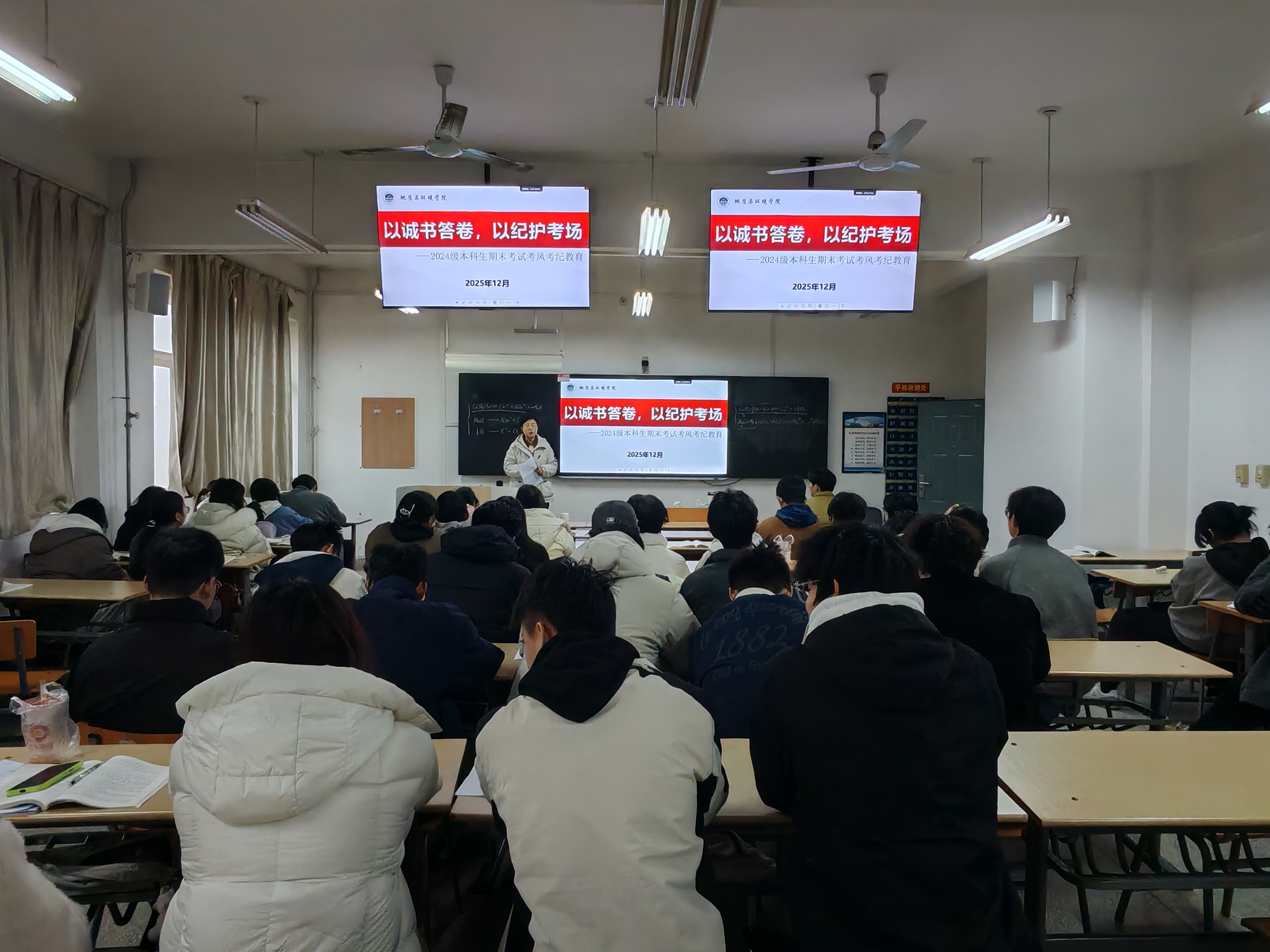 为严肃期末考试纪律,引导2024级本科生树立诚信应考意识,从容备战期末考试。12月15日至19日,学院学工办主任、2024级本科生辅导员李琳分批次在1号、3号、11号教学楼,为学院2024级9个本科班学生开展期末考风考纪专题教育。