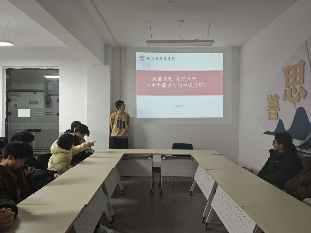 为提升学生干部综合素养与工作能力,打造高素质专业化队伍,1月10日,学院在“一站式”学生社区举办“赋能成长·领航未来”学生干部核心能力提升培训。地质工程(卓越)2301班王明洋担任主讲人,学院团学骨干全员参与。