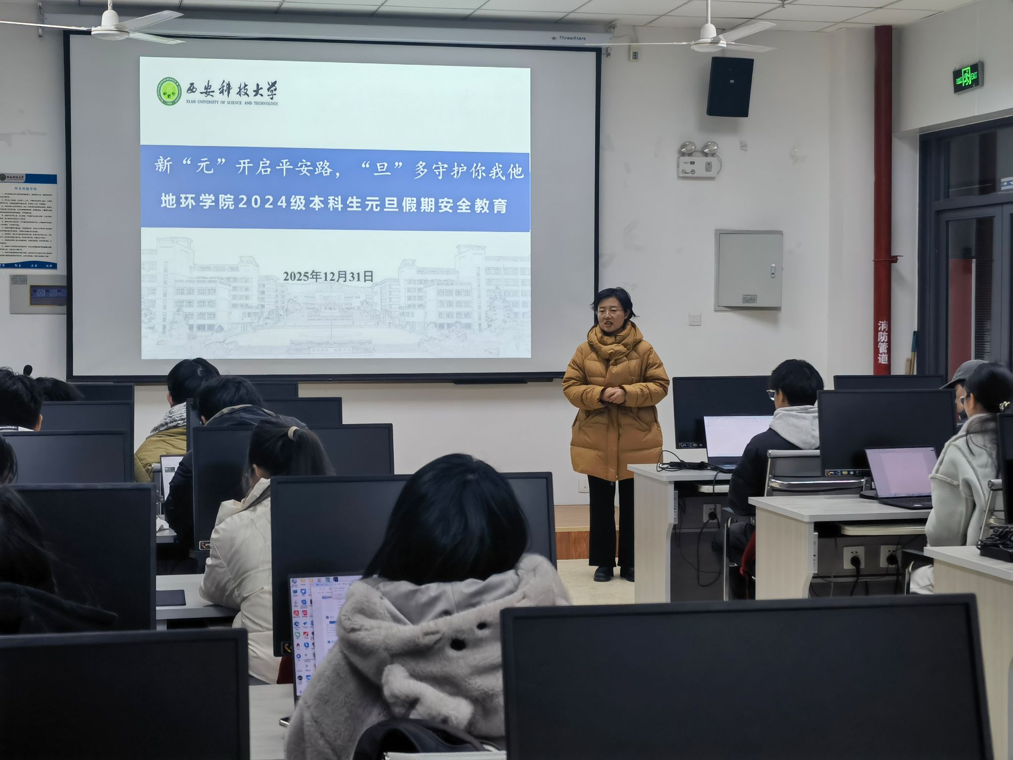 元旦佳节将至,为强化2024级本科生安全防范意识,保障学生度过平安祥和的假期,12月30日至31日,学院学工办主任、2024级本科生辅导员李琳,分批次在2教105、11教504及煤炭科技中心114,为2024级9个班本科生开展元旦假期安全教育会。