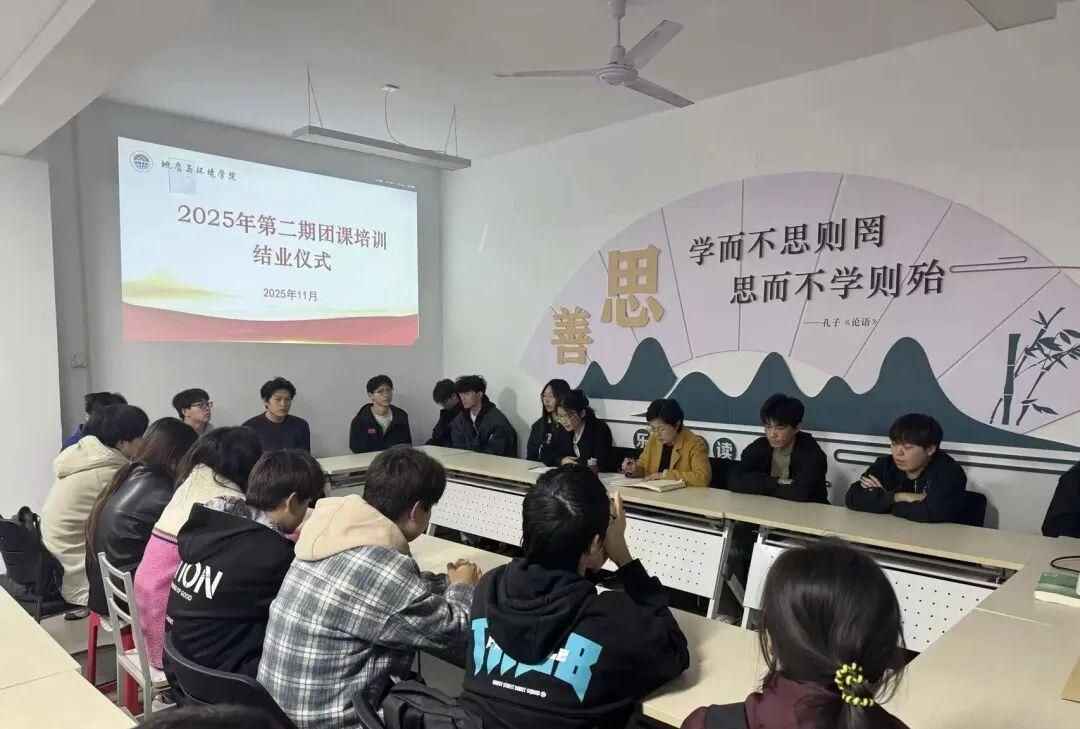 为深入学习贯彻习近平新时代中国特色社会主义思想,全面落实党的二十届四中全会精神,强化青年思想武装、筑牢理想信念根基,学院团委在2025年10月组织开展2025年第二期团课培训,39名学员参与学习。