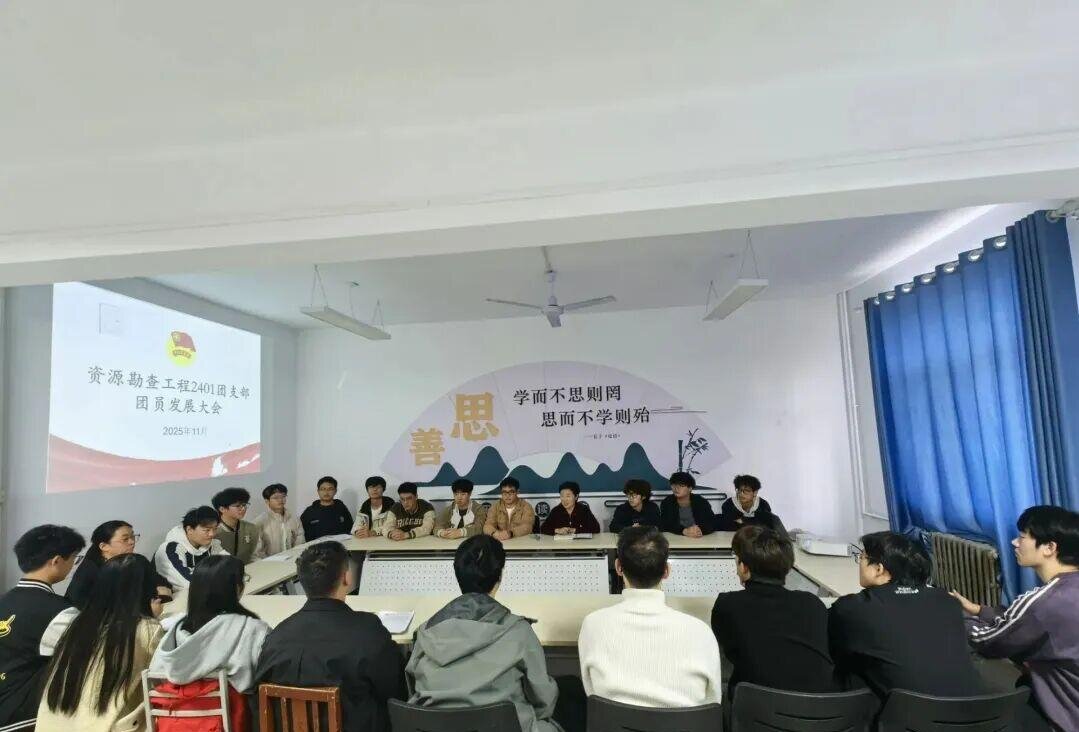 11月5日,资源勘查工程2401团支部在“一站式”学生社区召开团员发展大会,学院团委书记李琳莅临指导,支部团员及发展对象参会。