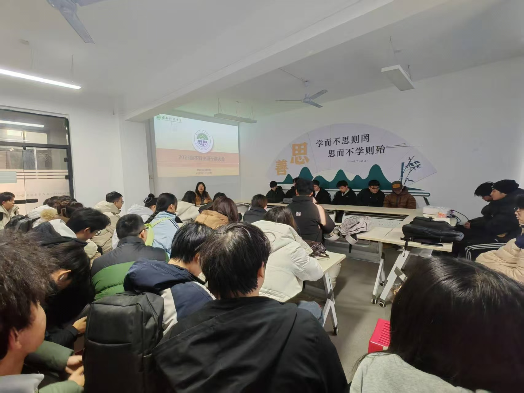 活动伊始,辅导员韩蕊在“一站式”社区会议室召开学生干部专题会。会上,围绕元旦假期出行安全、宿舍消防安全、用电规范、网络诈骗防范、离校返校报备、留校纪律等核心要点,结合近期高校安全典型案例,深入剖析交通出行风险、违规电器火灾隐患、“刷单返利”“冒充亲友借钱”等诈骗手段。同时,明确学生干部在假期安全监督、信息传递、同学联络中的职责,发起“安全责任接力”倡议,要求以宿舍为单元,逐一落实离校登记、留校报备、返校晚点名等工作,绷紧安全弦。