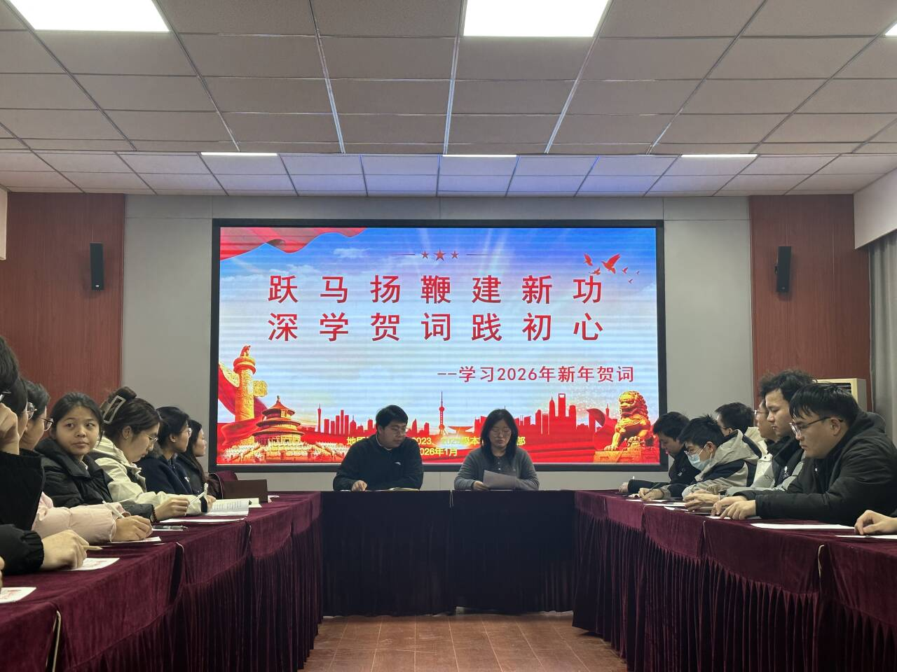 1月4日,2023、2025级本科生党支部以“跃马扬鞭建新功 深学贺词践初心”为主题,在11教322会议室开展2026年新年贺词专题学习,党支部全体党员及部分学生干部参加,会议由支部书记韩蕊主持。