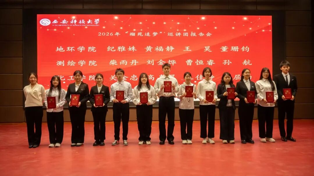 为落实立德树人根本任务,充分发挥奖助学金的育人功能,3月24日,由学生处主办,地环学院、测绘学院和化工学院承办的2026年“榴苑追梦·榜样引领”国家奖学金获奖学生首场宣讲会在骊山校园煤炭科技中心一层报告厅举行。相关学院学生工作负责人、校学生资助管理中心负责人、学院资助工作专项辅导员及本科生代表共500余人参加。