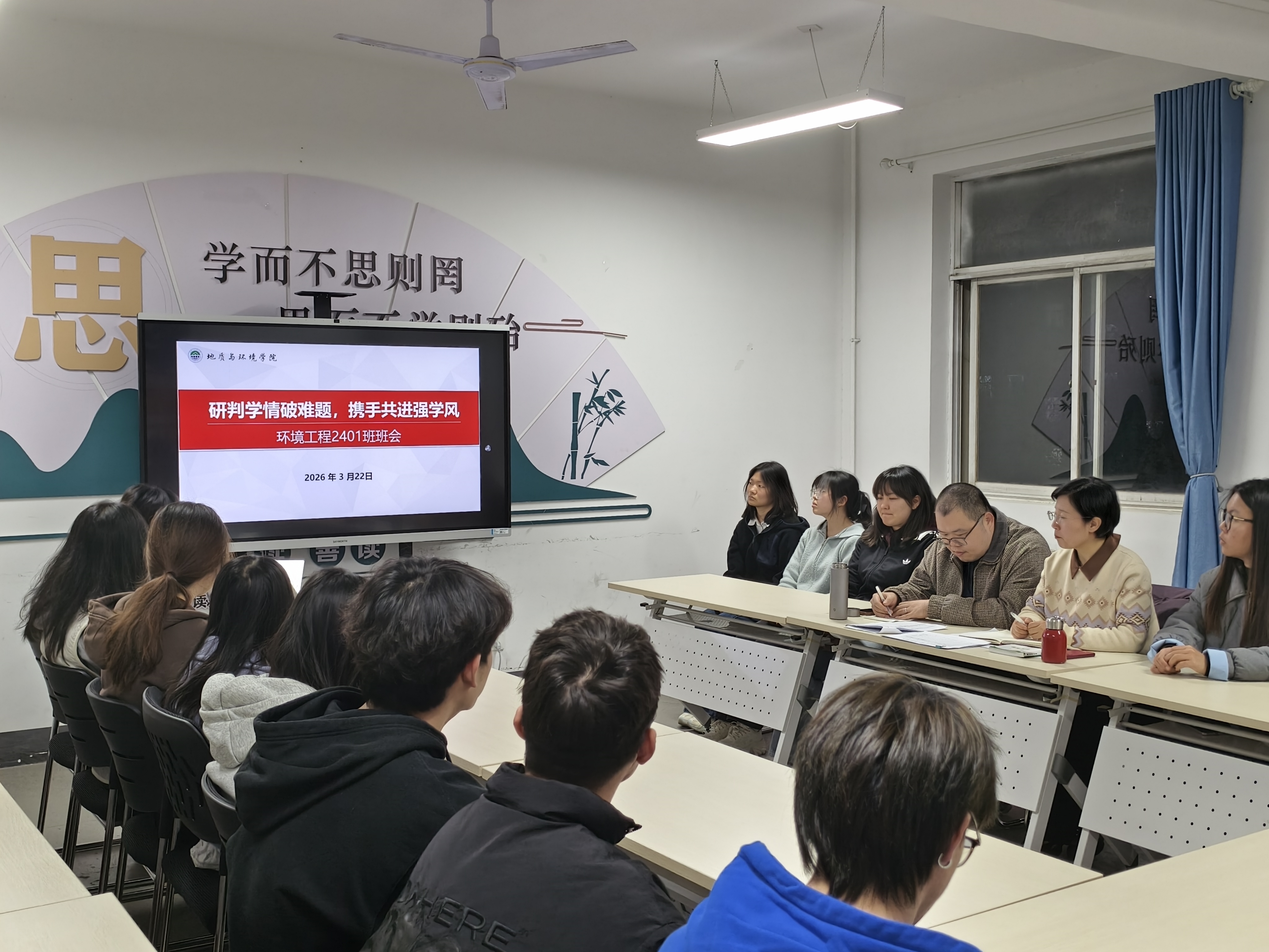 为强化班级学风建设,切实摸清学情底数、筑牢学风根基,3月22日晚,环境工程2401班在“一站式”学生社区召开“研判学情破难题,携手共进强学风”学情分析主题班会。本次班会由辅导员李琳主持,班主任王坤及班级全体同学参会。