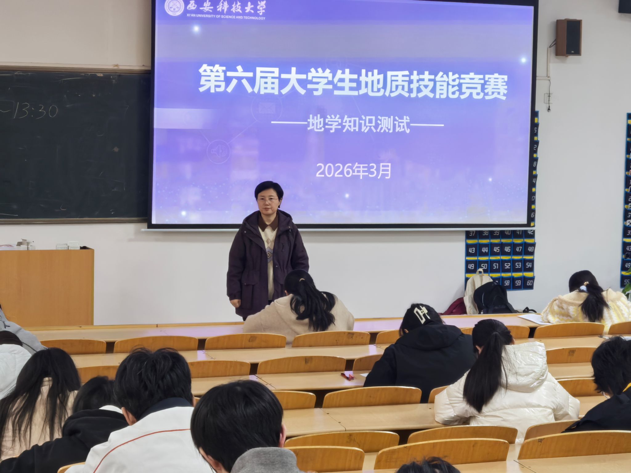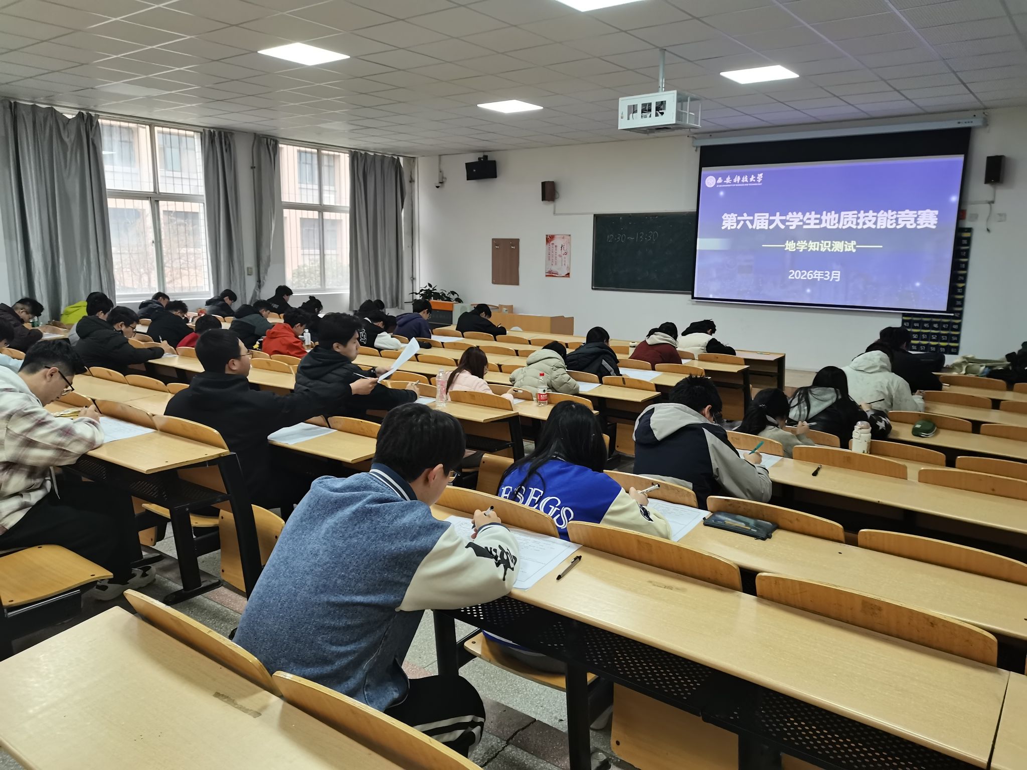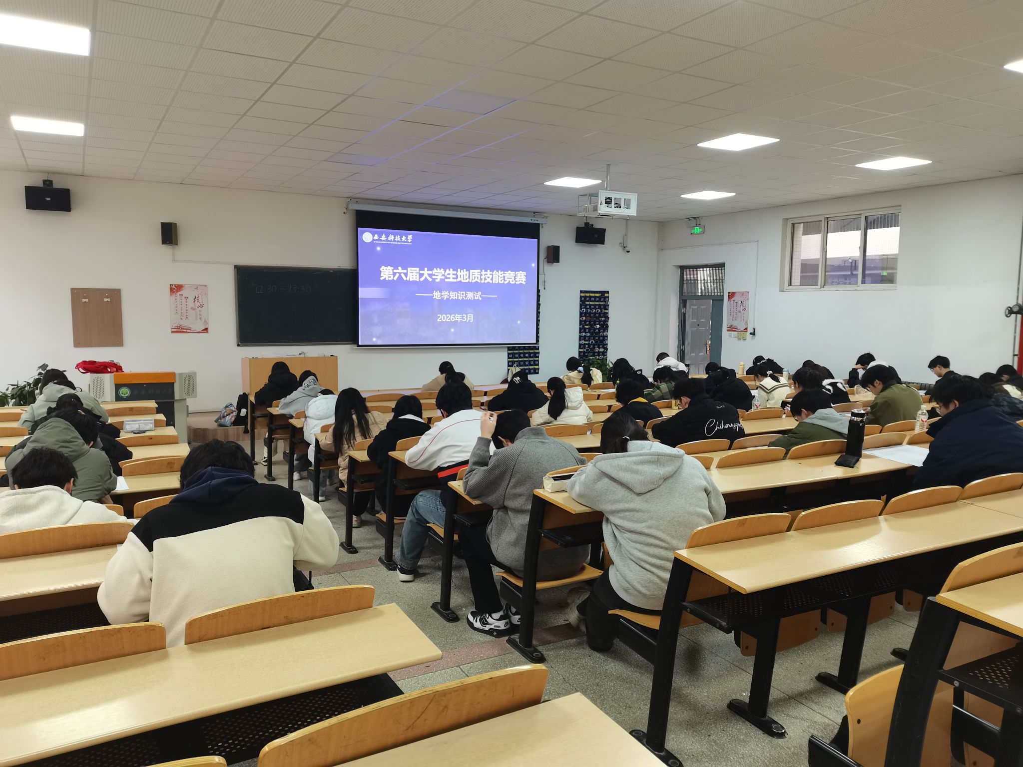 竞赛设两个单元。近日,第一单元地学知识测试在临潼校区骊山校园9号教学楼107、108教室完成,近200名学生参赛。该测试聚焦地学基础与专业技能,旨在检验学生知识掌握程度,引导其灵活运用所学解决实际问题。