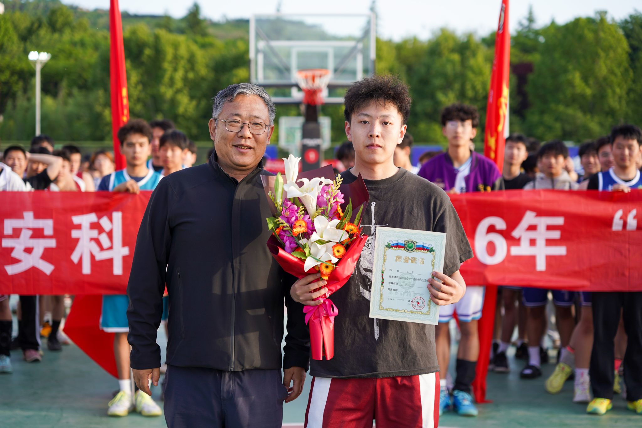 校党委副书记陈春林为能源与矿业工程学院代表队颁发奖牌和冠军奖杯。体育与健康学院、能源与矿业工程学院、地质与环境学院相关负责人分别为亚军地质与环境学院、季军安全科学与工程学院、第四至八名的机械工程学院、管理学院、人工智能与计算机学院、测绘科学与技术学院、材料科学与工程学院以及MVP陈章渡、FMVP王谛颁发奖牌。校党委副书记陈春林宣布西安科技大学2026年“地环•榴苑杯”篮球赛闭幕。