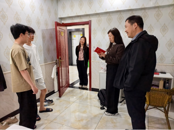 在实习驻地,赵雪萍书记、孙学阳院长一行深入学生宿舍,实地查看住宿条件,详细了解同学们野外实习期间的学习安排、饮食起居、安全保障等情况,与大家亲切交流,仔细询问实习过程中的困难与需求。院领导对同学们不畏艰苦、坚守野外一线的精神风貌给予充分肯定,叮嘱大家在野外作业中务必注意安全,劳逸结合,以良好状态完成各项实习任务。