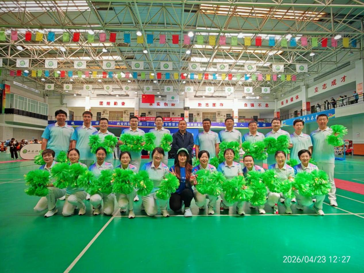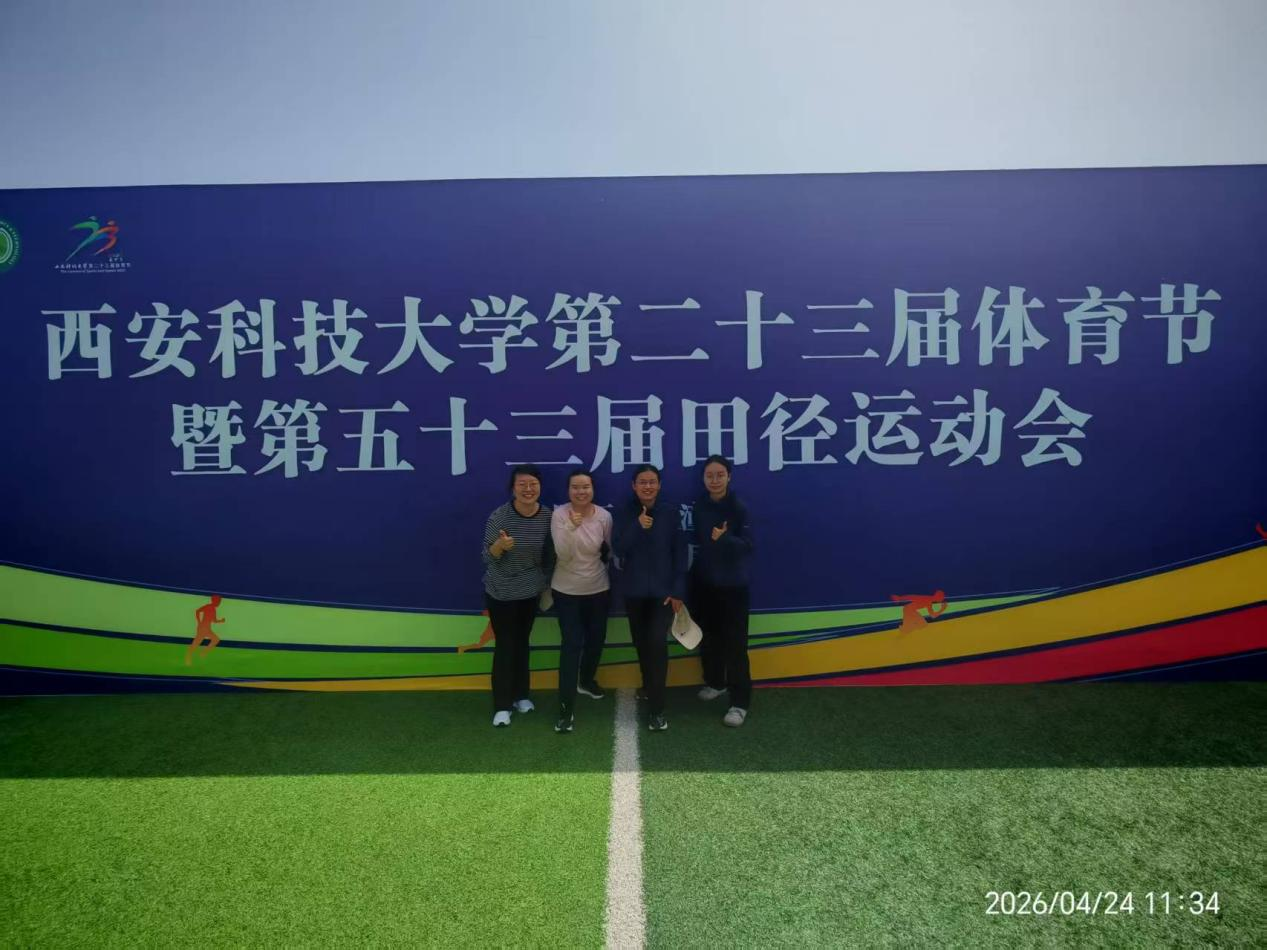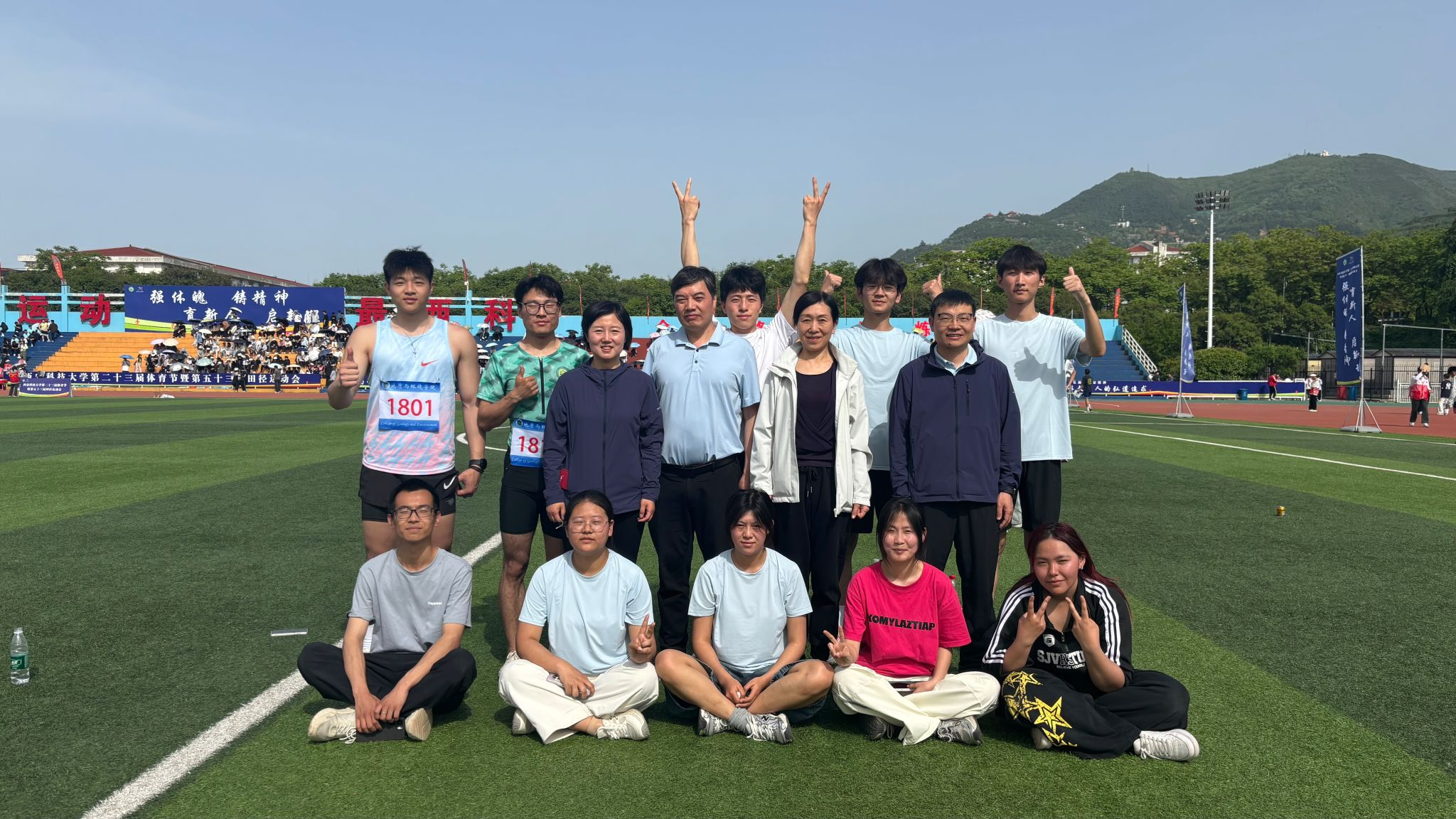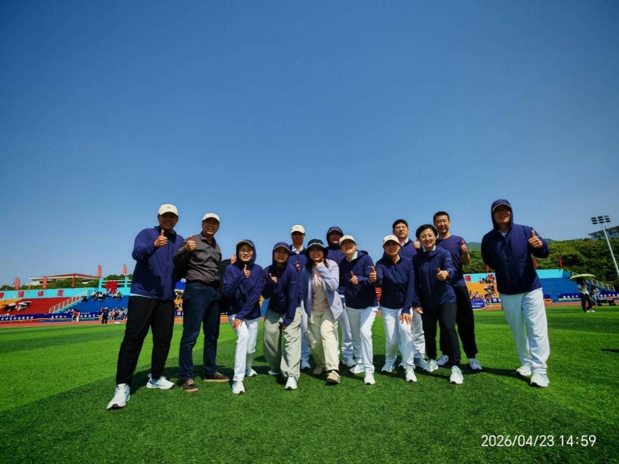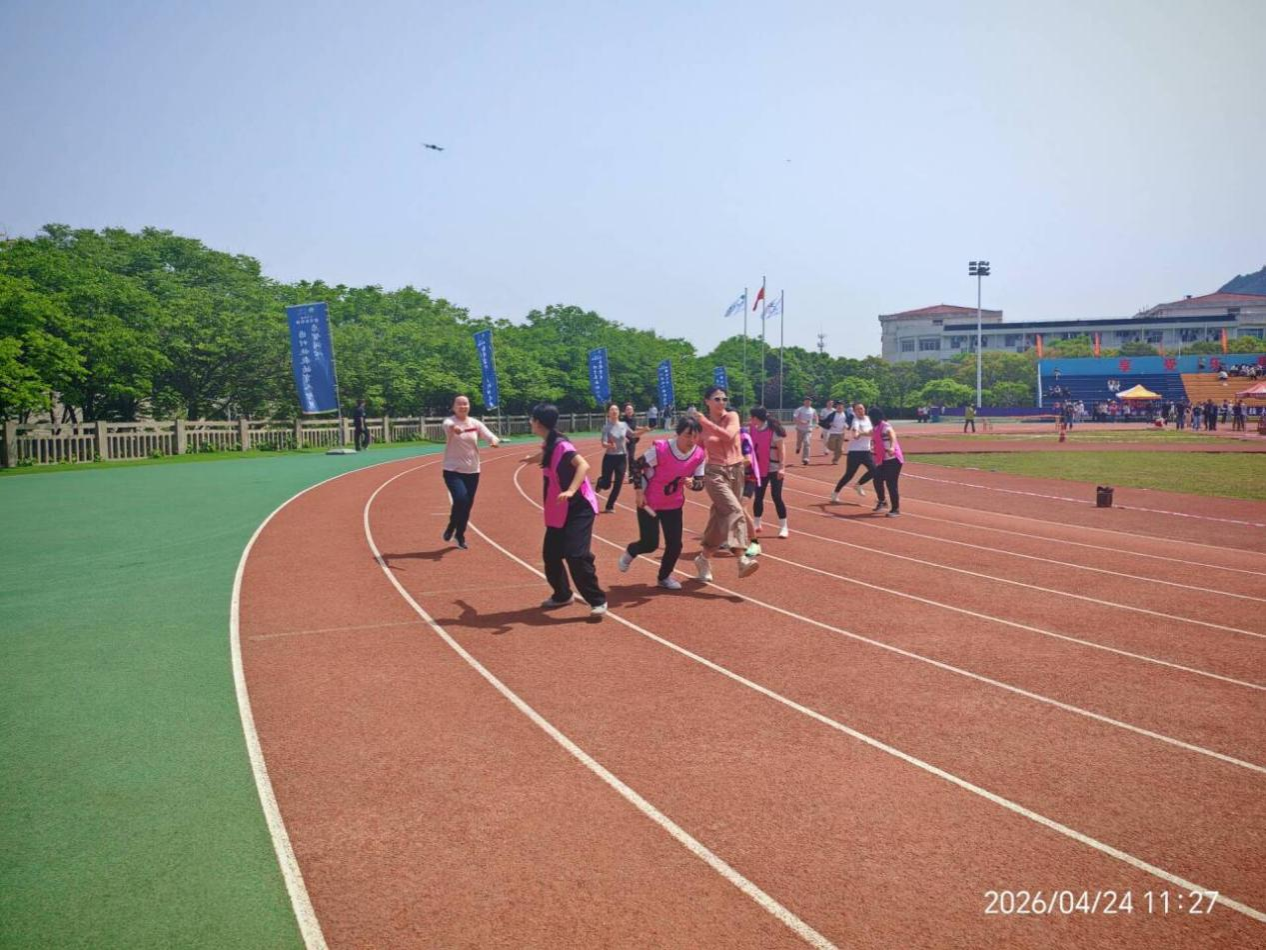 师生同场竞风流,榜样力量暖人心。教职工队伍在兼顾繁重教学科研任务的同时,利用课余时间刻苦训练,以饱满的热情投身赛场。健身操比赛中,老师们身着统一服装,步伐整齐划一、动作刚健有力,用同心协力的协作与顽强奋进的姿态,完美诠释了“更快、更高、更强——更团结”的体育精神。在个人与团体项目中,教职工同样表现亮眼:付常青获教工男子甲组铅球第二名,潘彦获教工女子甲组跳远第二名,韩蕊、范文静分别斩获教工女子甲组铅球第五名、第七名。团体趣味项目更是掀起教师协作热潮,三人四足接力赛上,老师们肩并肩、手挽手,喊着整齐口号同步前行,即便偶有踉跄也迅速调整节奏,凭借默契配合稳步冲向终点;毛毛虫竞速赛场,大家跨坐在充气毛毛虫道具上,双手紧握把手、双脚同步蹬地,身体随节奏起伏摆动,在欢声笑语中向着目标奋力冲刺,最终两大团体项目均斩获第二名的优异成绩。